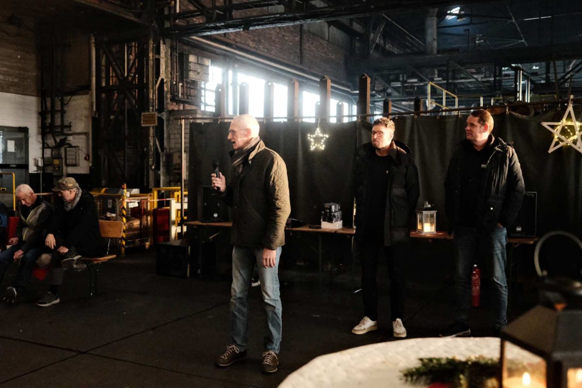 Zum Ende eines ereignisreichen Jahres haben wir unsere Weihnachtsfeier mit unseren Mitarbeiterinnen und Mitarbeitern der Bochumer Eisenhütte gemeinsam mit unserer Schwesterfirma ROOF+ wieder in unserer nostalgischen Werkshalle in Bochum gefeiert – bodenständig, herzlich und genau so, wie wir es mögen. Ein Food Truck mit frisch zubereiteten Burgern und Pommes, dazu Fiege Pils und diverse Softgetränke – beste Voraussetzungen für gesellige Stunden.